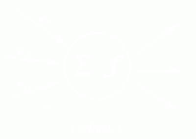 където i се променя от 0 до n. С w е означен тегловният коефициент на връзката между тялото и дендритите на неврона; с yj е означена активността на невроните, свързани с неврон i, yi е изходът на неврона, f е предавателна функция, wij е тегловният коефициент между неврон i и неврон j.